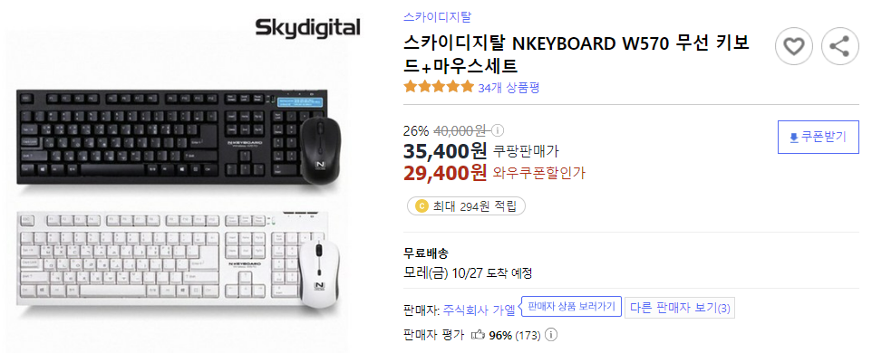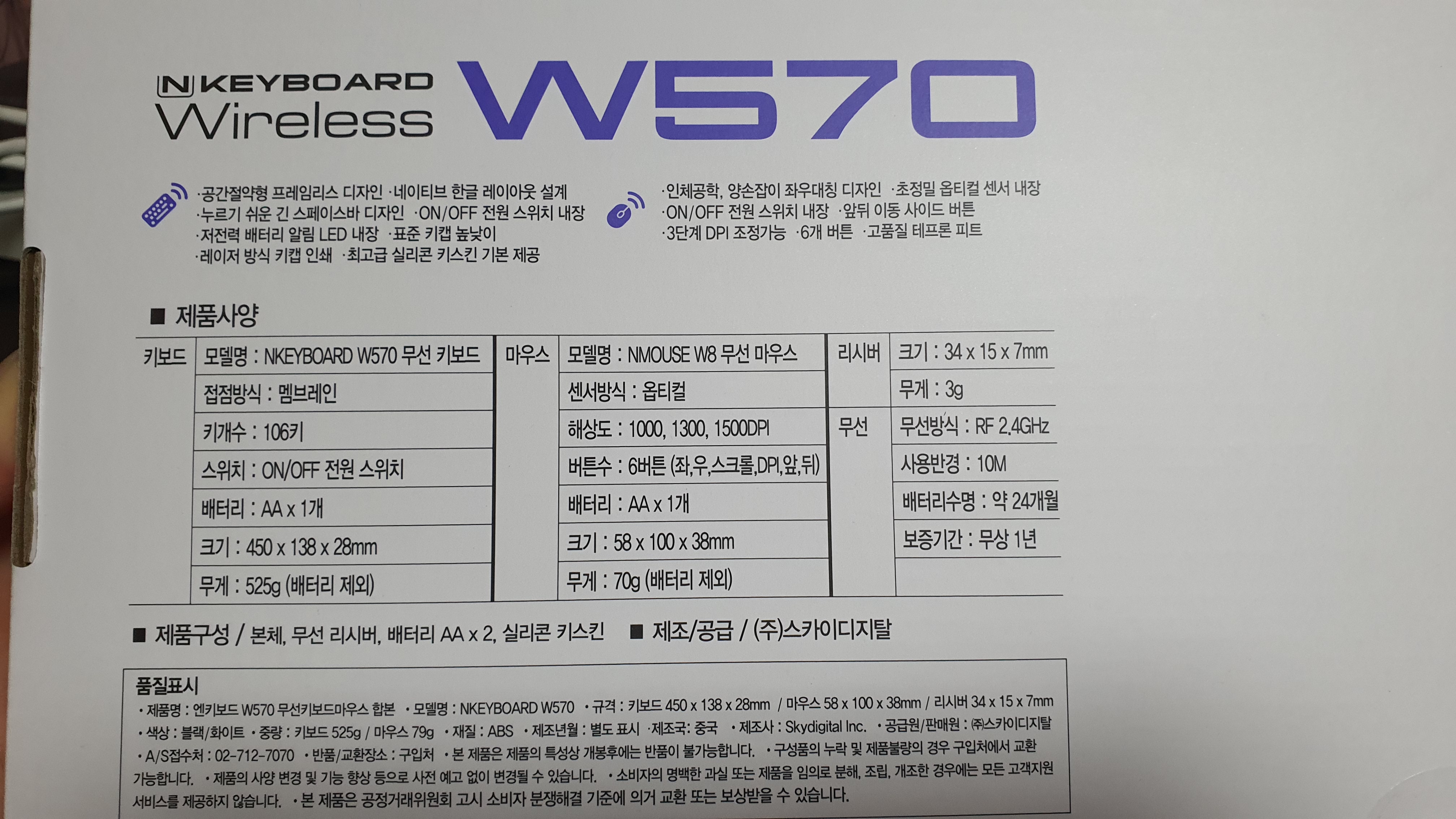 여러 후기를 검색한 끝에 사무용으로 저렴하니 가성비가 좋다고 해서 스카이디지탈 NKEYBOARD W570 제품으로 구매를 했습니다.