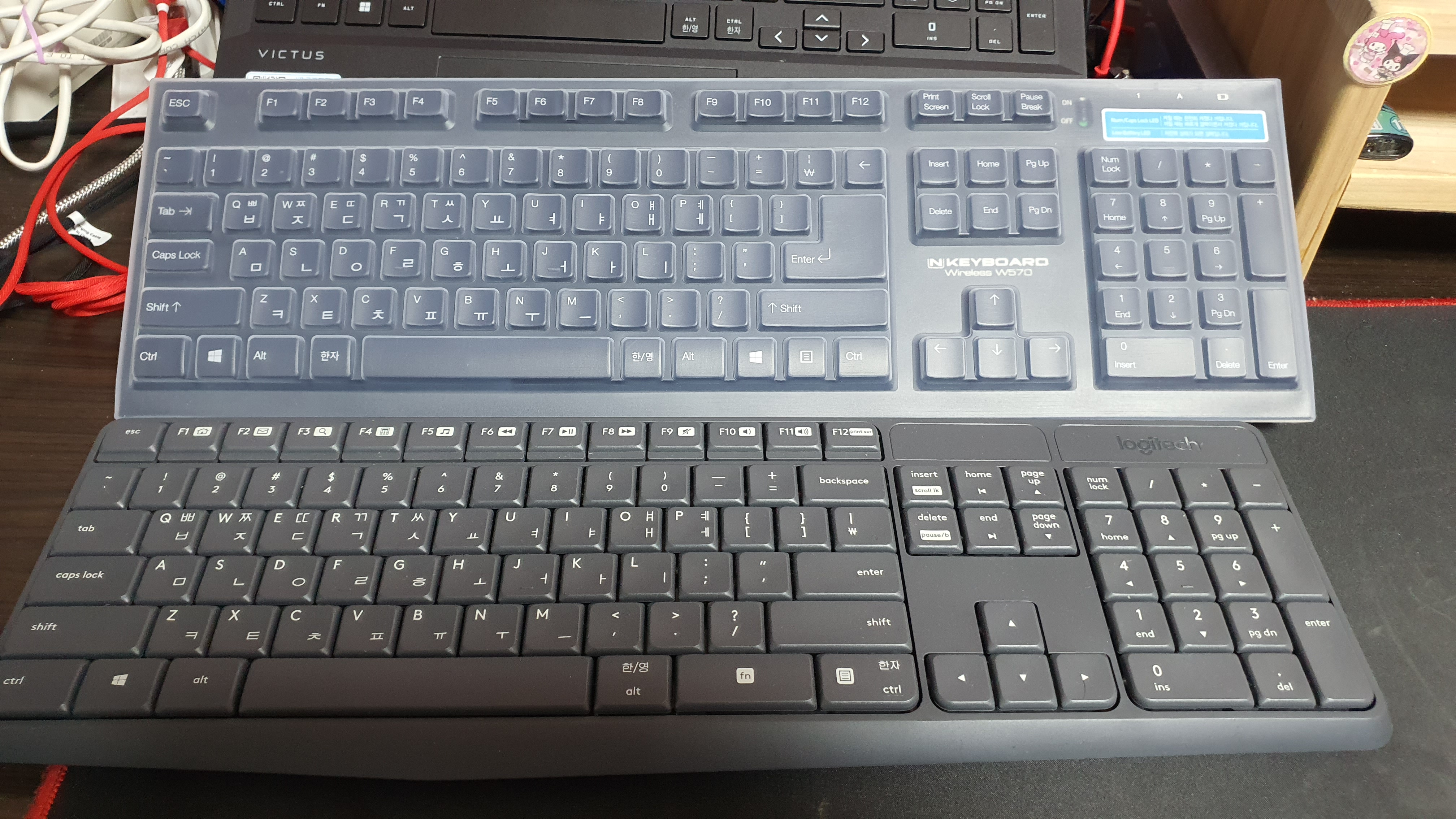 전체적인 크기는 폭은 비슷하지만 너비는 스카이디지탈 W570이 좀더 긴게 특징입니다. 로지텍 K235의 키가 좀더 오밀조밀하게 모여있다면 스카이디지털 W570의 키는 우리가 생각하는 일반적인 보급형 라인의 특징이랄까요? 무난하면서도 키 사이가 어느정도 띄워져 있는 형태를 하고 있습니다.